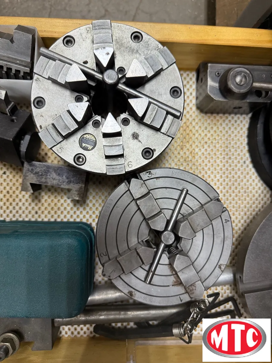 6 jaw and 4-jaw Chuck, Set of 5C collets, Quick Change tool post and 28 holders, Digital Read outs and electronic threading