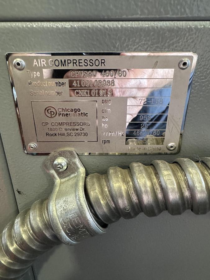 To view more information on the CHICAGO PNEUMATIC CPVS20 ROTARY SCREW COMPRESSOR 20 HP, including reviews, brand information, photos, videos, and more,