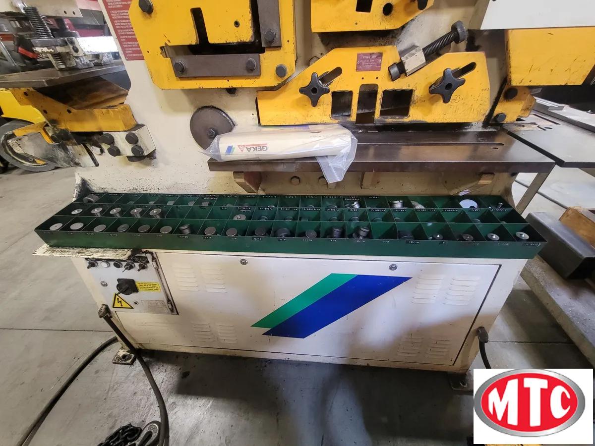 Very good condition Geka Hyrocrop 110 ton ironworker, with tone of tooling and "C" channel blades as well as rod shear angle shear, flat bar shear, coper/notcher and of course punch station, two foot pedals