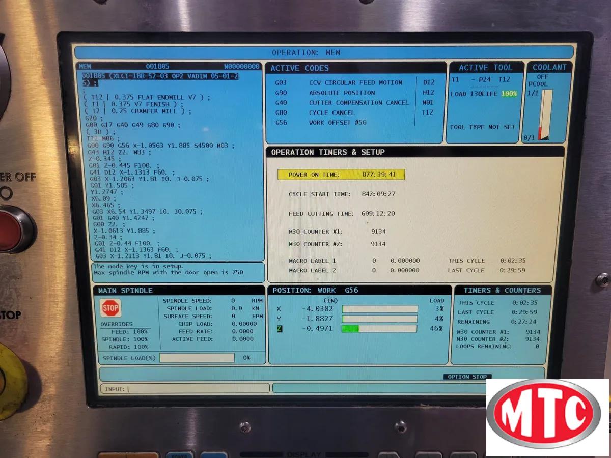 8,100 RPM belt drive spindle, 24 ATC with Swing arm, Chip Auger, P-cool and rigid tapping